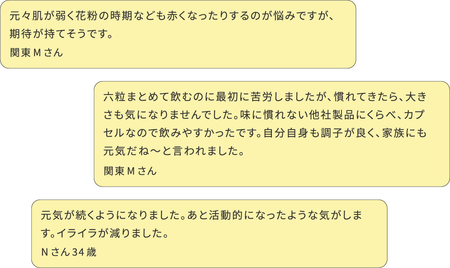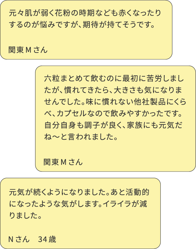 原材料をご確認の上、食物アレルギーのある方は、お召し上がりにならないでください。まれに体調に合わないこともございます。お召し上がり後体調がすぐれない場合は一時利用を中止してください。妊娠中、疾病などで治療中の方は、お召し上がる前に医師にご相談ください。